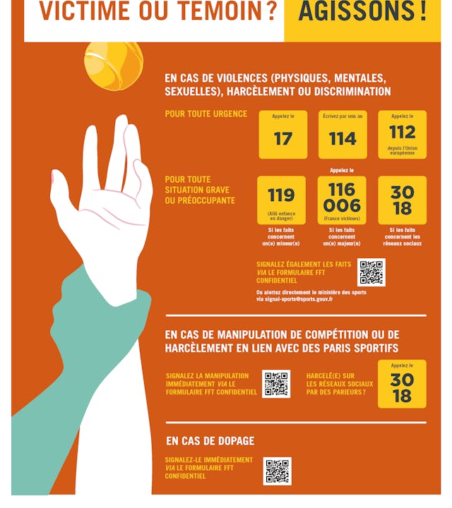 La protection de la santé physique et mentale de ses pratiquants contre toute forme d’agression verbale, physique ou sexuelle et la préservation de l’intégrité de ses compétitions contre toutes formes de dérives font partie des priorités d’action de la FFT.